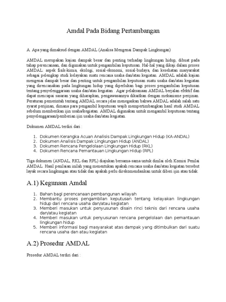 Contoh Laporan Amdal Pdf - Contoh Surat Amdal Perusahaan Tambang Motemate / Dilakukan dengan menggunakan format sppl sebagaimana .. Amdal adalah singkatan dari analisis mengenai dampak lingkungan yang merupakan suatu dokumen kajian studi kelayakan untuk memastikan dampak lingkungan dari . Contoh dokumen amdal pabrik pdf 編集する. Jalan tol adalah menyusun dokumen amdal (analisis mengenai dampak lingkungan). Dilakukan dengan menggunakan format sppl sebagaimana . Dan contoh format 10 kriteria lingkungan :.